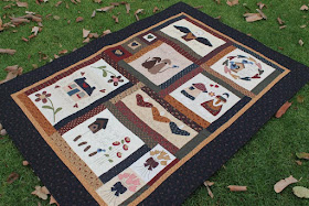 We decided on a pattern I had sewn a couple of times before - ‘Friendship’s heart by The Birdhouse’ with a few changes to the wording to make it more appropriate. We also changed the Cat block to dogs which Linda loves and used Hatched and Patched drawings for inspiration.